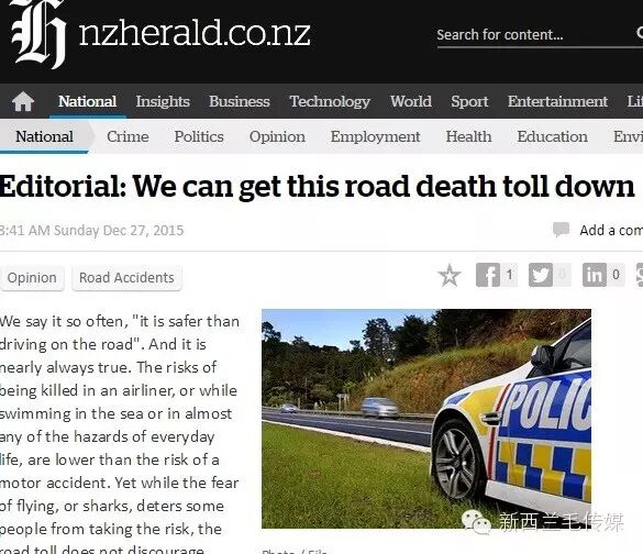 12月27日,新西兰英文日报New Zealand Herald 为圣诞、新年假期道路安全问题发表了社论。这篇名为《我们能把道路死亡数字降低》的社论说,现在,高速公路已经安全很多,超车线也增加了不少。交通道路死亡率这么高,是没有理由的。