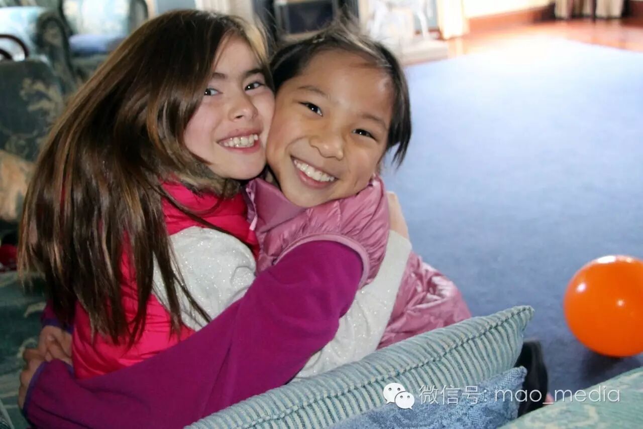 快9岁的朱丽叶(左)和快10岁的曾紫恩依依不舍。(摄影:毛芃)
