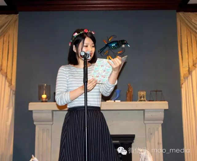在梅西大学读研究生的郭安妮朗诵了毛芃写的诗歌《远航》。她说:“我现在20多岁,能朗诵读毛芃姐20多岁时写的诗歌,体验她对远方的向往,这很有意思。”