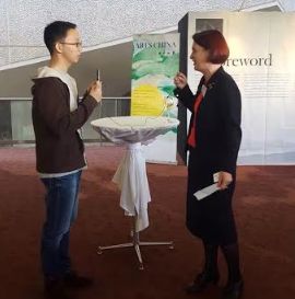 再见Jennifer母子,是2018年11月的桃源诗会。此时,Jennifer已经完成了她在AUT的学业,在百伦留学移民公司全职做市场工作。 这次诗会上,母子俩合作朗诵了美国诗人诗人Robert Frost 的诗歌 《刈草》(Mowing),儿子朗诵英文,母亲朗诵中文。 朗诵前,母亲开玩笑说,今天没有人把他们当作姐弟俩;儿子说,他母亲将在冰点剧社的新剧《配.爱》中演“八号女主角”,欢迎大家去观看。