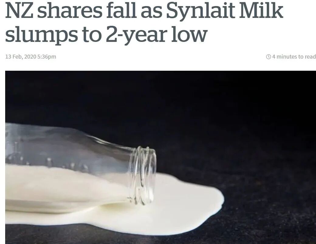 今年2月13日和14日,新西兰英文媒体 NZ Herald网站曾连续两天发文指新莱特领跌新西兰股市。文章说,由于婴儿配方奶粉市场疲软以及新冠肺炎的爆发给供应链带来风险,新莱特将其年度前景预测降到顶多持平;那两日,新莱特股票跌幅达22.6%。