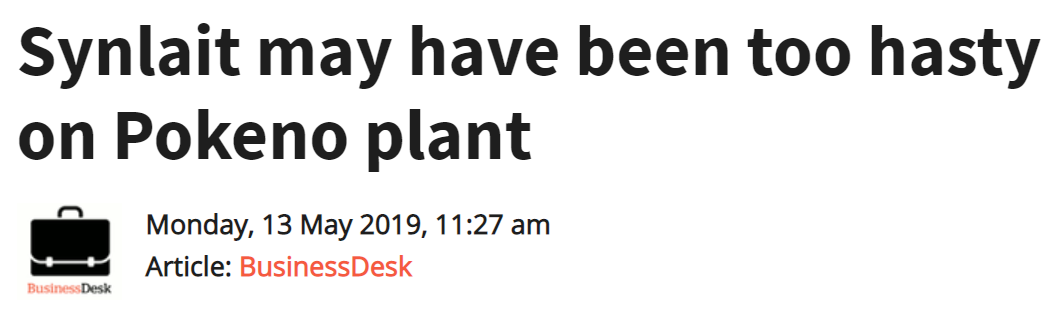 Jenny Ruth, Synlait may have been too hasty on Pokeno plant, Newsroom, 13-05-2019