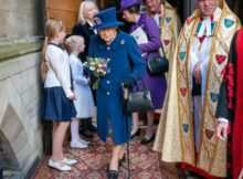 英国女王伊丽莎白二世在威斯敏斯特大教堂参加活动时拄着拐杖走路。