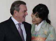 49岁的金素妍身着韩国传统服饰,一脸崇拜地看着比自己大25岁的夫君。