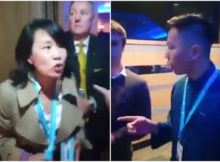 主持会议的布鲁斯议员请她离场,但她继续尖叫。当一位工作人员请她离场时,她打了他两巴掌。